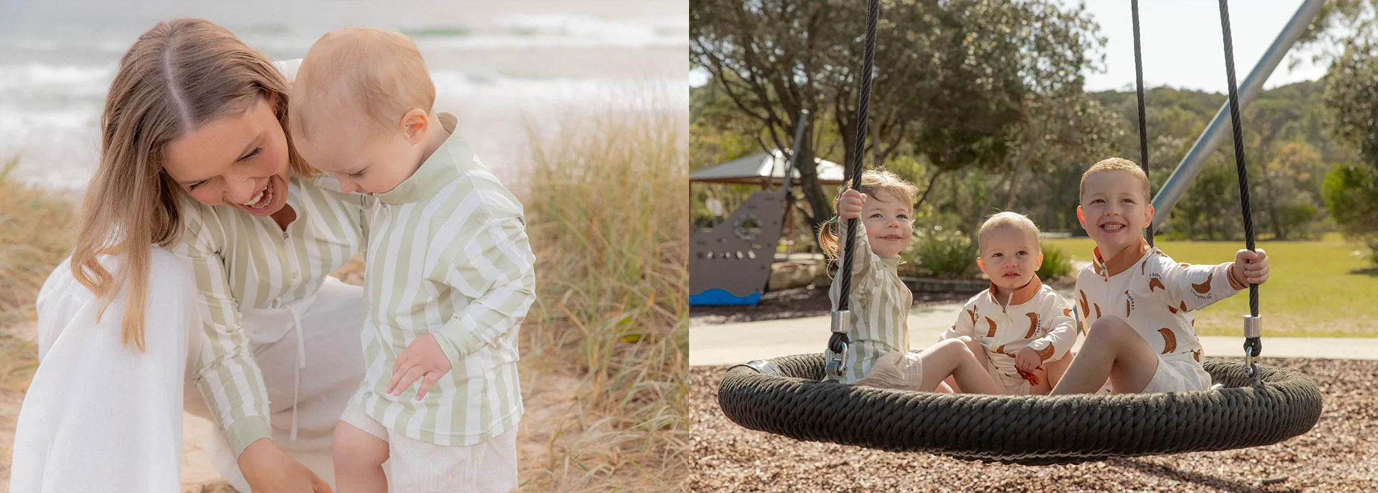 Throw on & go coverage you don’t have to reapply. Soft, breathable, bump friendly, quick-dry fabrics with flattering fits that take you from beach to café. Less reapply, more play.